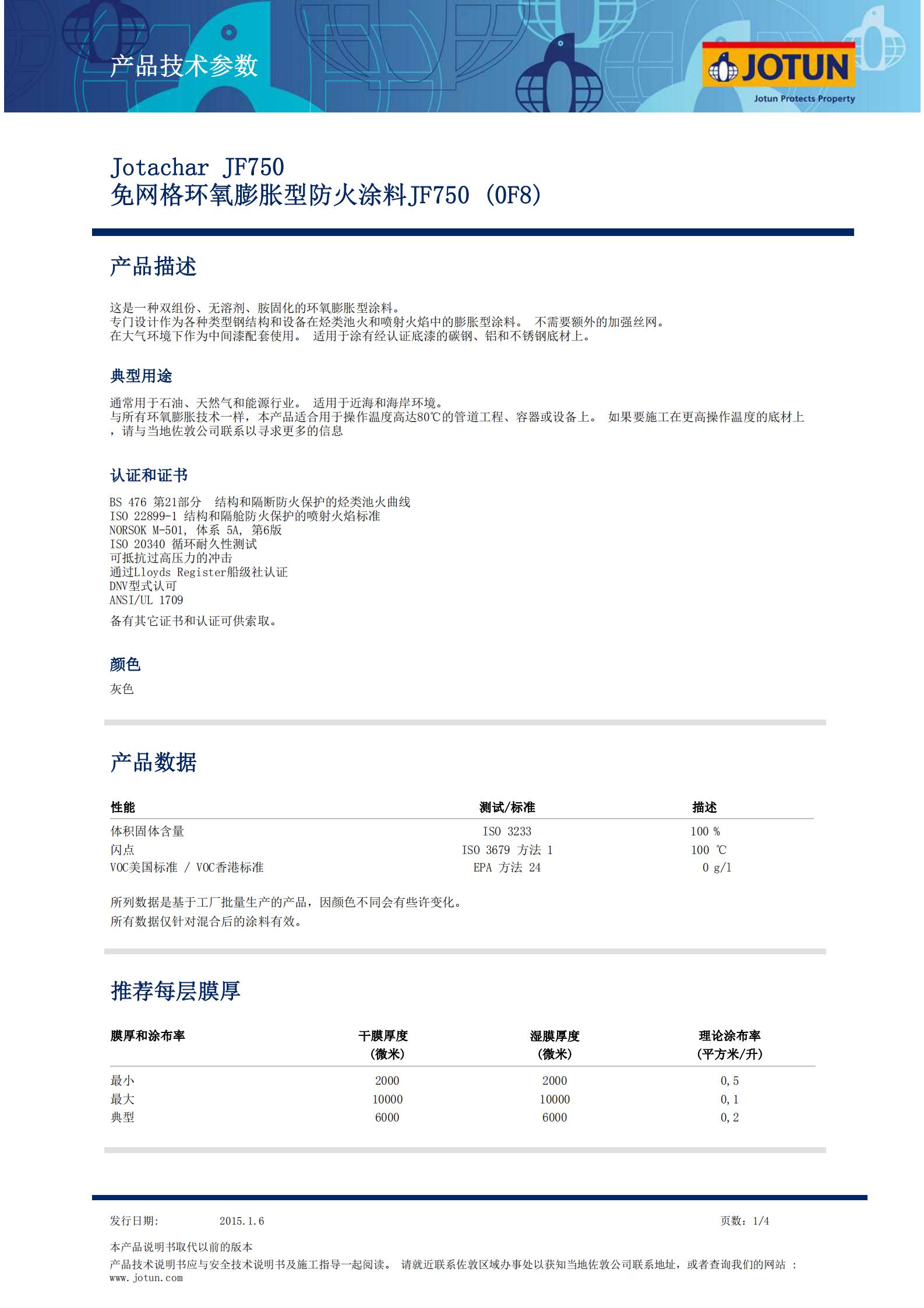 TDS-Jotachar+JF750-免網格環氧膨脹型防火塗料JF750