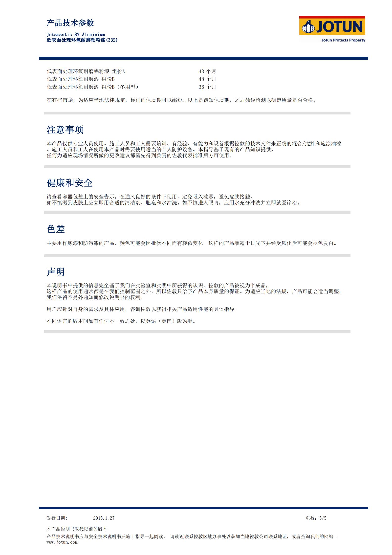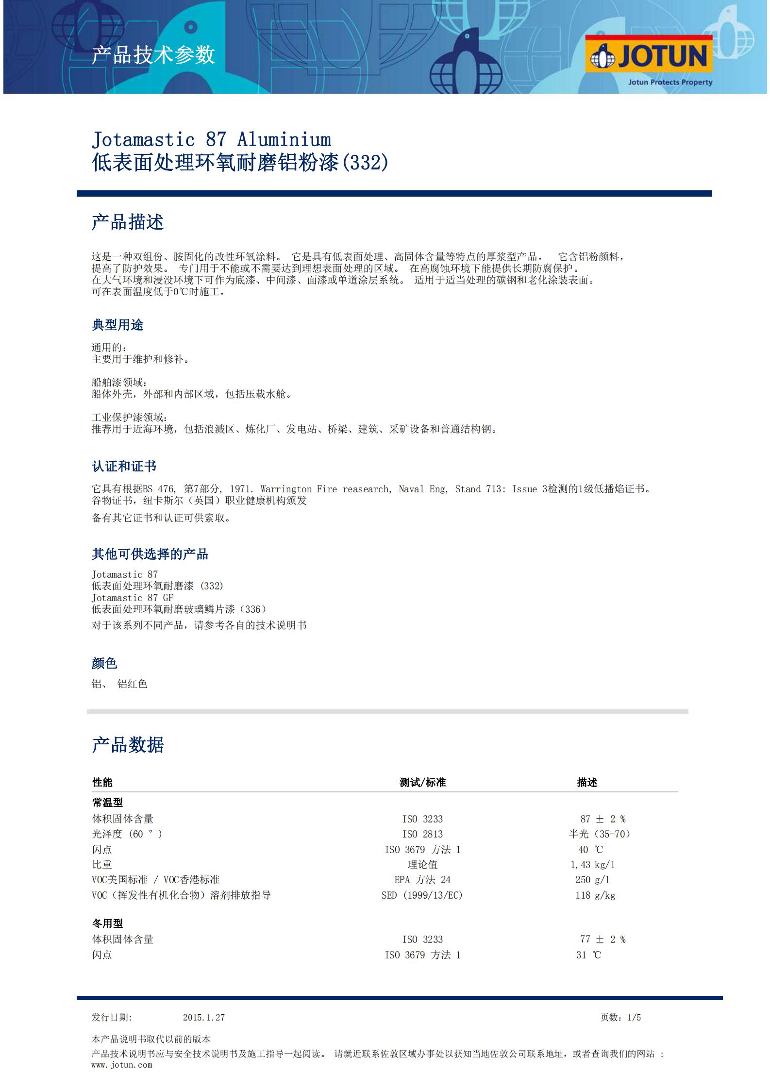 TDS-Jotamastic+87+Aluminium-低表麵處理環氧耐磨鋁粉漆